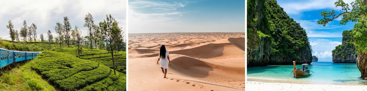 Sri Lanka ist wie ein Kaleidoskop aus Farben, Gerüchen und Formen, ständig in Bewegung und doch in sich ruhend. In den Hügeln von Ella ziehen sich Teefelder wie grüne Teppiche über das Land. Alte Dampfloks schlängeln sich durch das Hochland, vorbei an Wasserfällen, Wolken und Dörfern. Im Süden brechen Wellen an leeren Stränden, während Fischer auf Stelzen im Meer stehen – wie Skulpturen gegen den Horizont. Die Tempel duften nach Räucherwerk und Jasmin, und in den Nationalparks kreuzen Elefanten gemächlich den Weg.